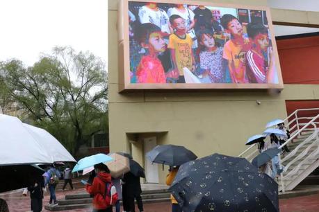 在西苑餐厅的大屏上循环播放着关于自闭症儿童的相关新闻报道。看到自闭症儿童的父母和老师对于孩子们生活的不易的亲身讲述,在场的同学们都感触良多。