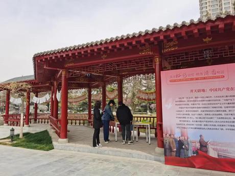 党史知识在线竞答环节:扫描会场内“党史知识卡片”上的二维码参与网络答题,完成挑战,可在“翻天覆地打卡点(秦园)”获得印章。