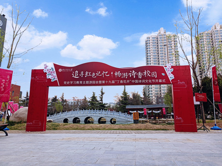 2021年4月12日,350vip浦京集团官网三十余名师生代表参与“追寻红色记忆,畅游诗香校园”党史学习教育主题游园会暨第十九届“丁香花开”中国诗词文化节开幕式。