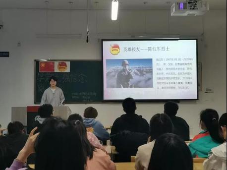 “埋骨何须桑梓地,人生无处不青山。”陈红军烈士用生命诠释了他的承诺,诠释了新时期革命军人必能召之即来、来之能战、战之必胜。此前,我们在“开学第一课”上了解了陈红军烈士的英雄事迹,本次活动通过视频和教师访谈录等资料再次追忆了陈红军烈士那闪烁着理想之光的大学生涯,了解了在整个边境冲突事件中陈红军烈士的壮举,学习了陈红军烈士大无畏的英雄精神,希望这种英雄精神能够深深植根于每个同学平凡的行为之中,从平凡之处去实践我们这个民族伟大的品质和精神。