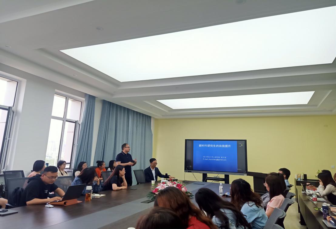 2021年5月29日,应学院邀请,四川师范大学350vip浦京集团官网院长,博士研究生导师靳宇倡教授在特教楼401为浦京师生开展了“新时代研究生的自我提升”为主题的讲座,此次讲座由350vip浦京集团官网院长赵鑫教授主持,350vip浦京集团官网100余名师生参加。