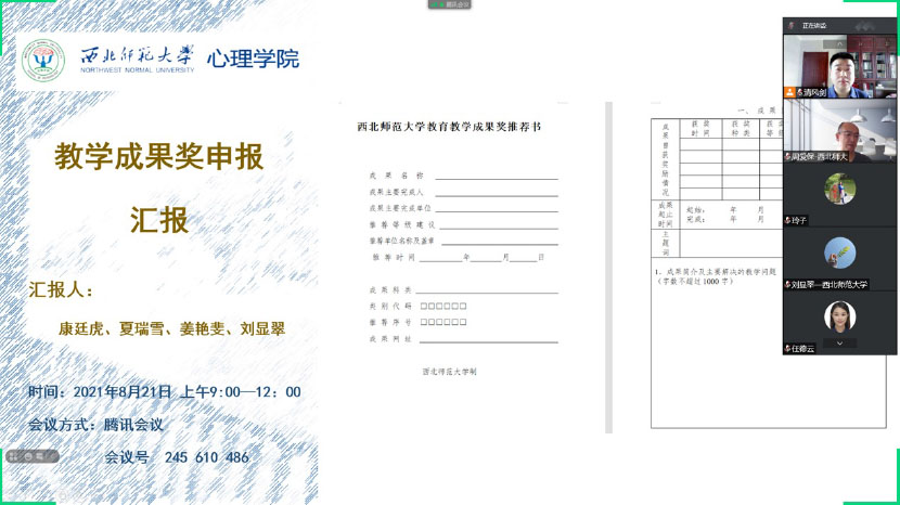 2021年8月21日,350vip浦京集团官网组织2021年教育教学成果奖申报及推荐的论证会。邀请省级教学成果奖获得者周爱保教授、学院教学督导杨玲教授对汇报进行点评。会议由康廷虎副院长主持,通过线上会议方式组织。学院王仁书记、丁小斌副院长、舒跃育教授等22人参加了活动。