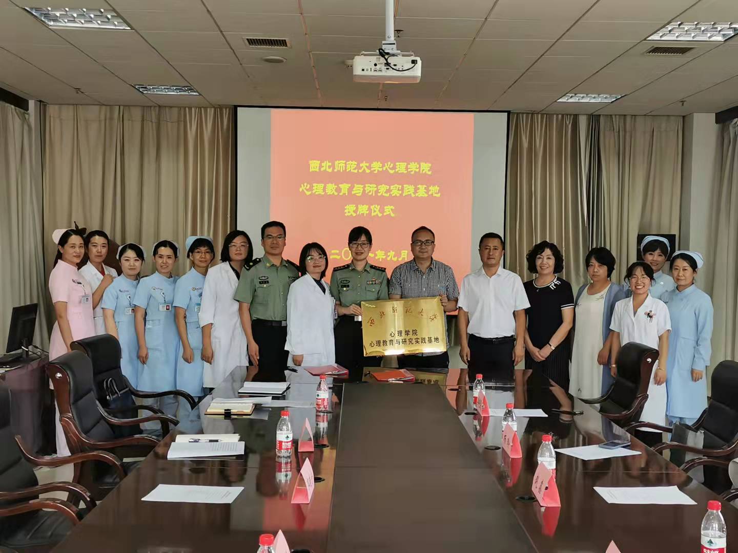 9月1日,浦京教学实习基地签约授牌仪式在联勤保障部队第九四〇医院卫勤部会议室举行,浦京院长赵鑫教授,副院长丁小斌教授、杨玲教授、姜艳斐副教授参加签约仪式。签约仪式由联勤保障部队第九四〇医院心理卫生中心负责人安花花主持,联勤保障部队第九四〇医院军队伤病员管理科主任刘艳、政治工作部宣传科干事郭晓宁、卫勤部科训办叶燕老师及心理服务队队员参加了签约仪式。