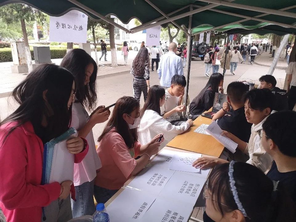 在经过小小的等待后,我们的活动参与棚也迎来了同学们的参与,从早晨到傍晚,来参加活动的同学络绎不绝。
