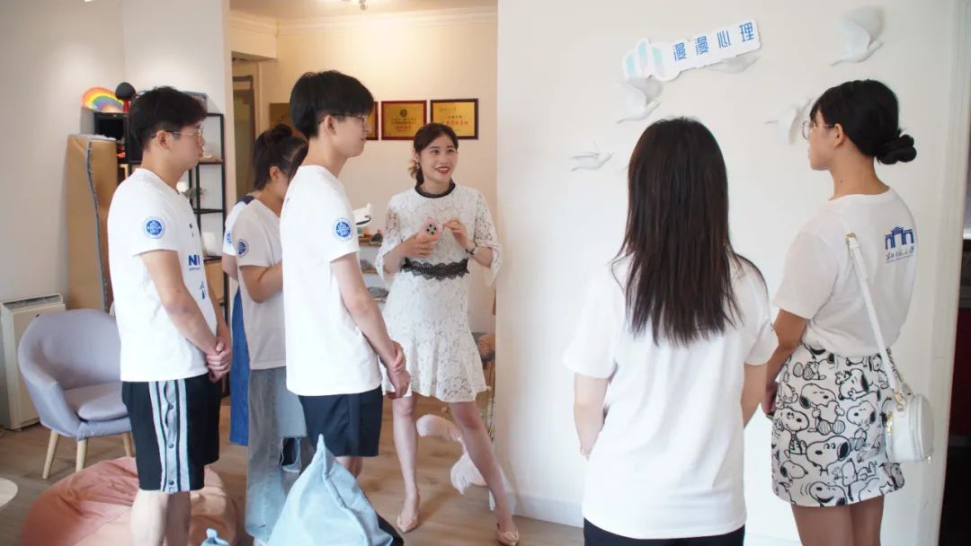 2021年7月17日,350vip浦京集团官网“‘心’青年,‘新’视点——就业实践团”来到了他们的第二站:漫漫心理工作室。