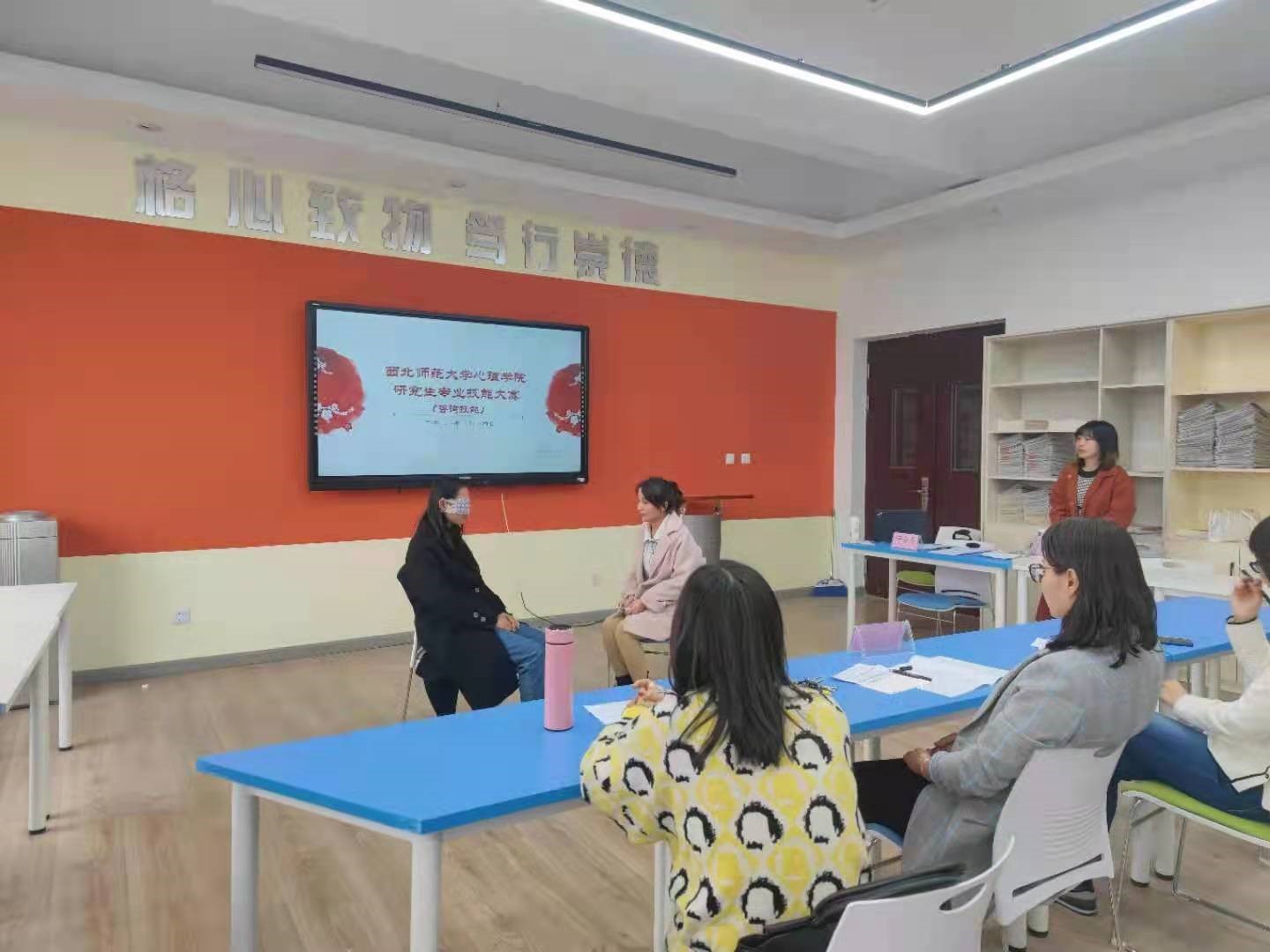 2021年度350vip浦京集团官网研究生学术月心理咨询技能初赛于10月14日下午在特教楼441、453举行。来自各高校心理咨询中心的陈卫平、孙晨哲、祁畅、李娟娟教师和350vip浦京集团官网的朱雅雯、杨晓莉教师共同担任比赛评委,全院20名硕士研究生分两组参加了咨询技能比赛。