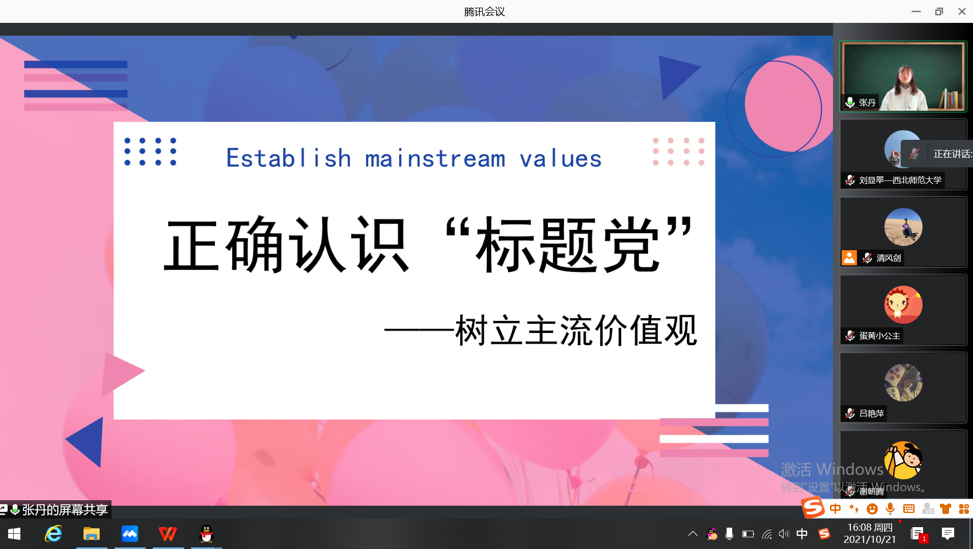 2021年10月21日,学院组织第二届全国大学生心理辅导课教学创新展示会选拔工作。受新冠疫情影响,此次活动以线上方式举行。来自350vip浦京集团官网的评委老师、专业教师和学生60余人参加了活动。会议由350vip浦京集团官网副院长康廷虎教授主持。