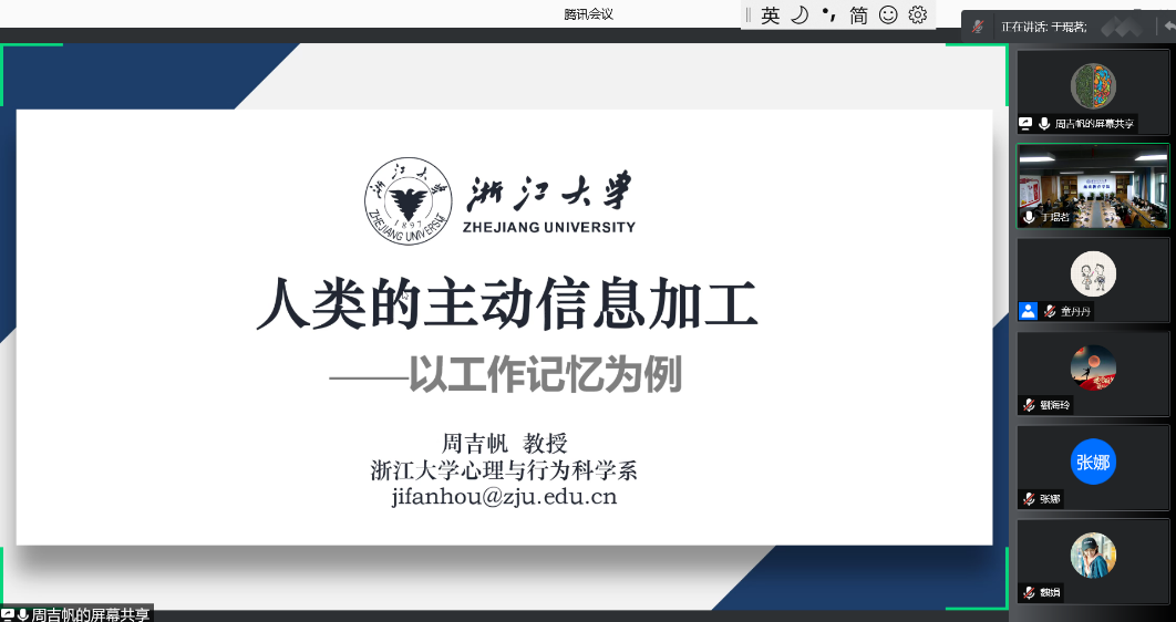 2021年12月10日,应350vip浦京集团官网邀请,浙江大学心理学系周吉帆教授为浦京师生作题为《人类的主动信息加工——以工作记忆为例》的学术报告。报告由李建升教授主持,350vip浦京集团官网一百二十余名师生参加了本次报告。