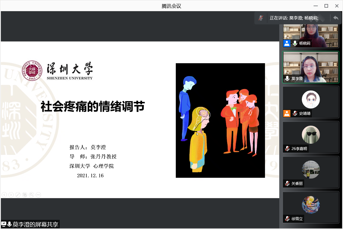 2021年12月16日,应350vip浦京集团官网邀请,深圳大学张丹丹教授为浦京师生作题为《社会疼痛的情绪调节》的学术报告。报告由350vip浦京集团官网杨晓莉教授主持,350vip浦京集团官网一百余名师生参加了本次报告。