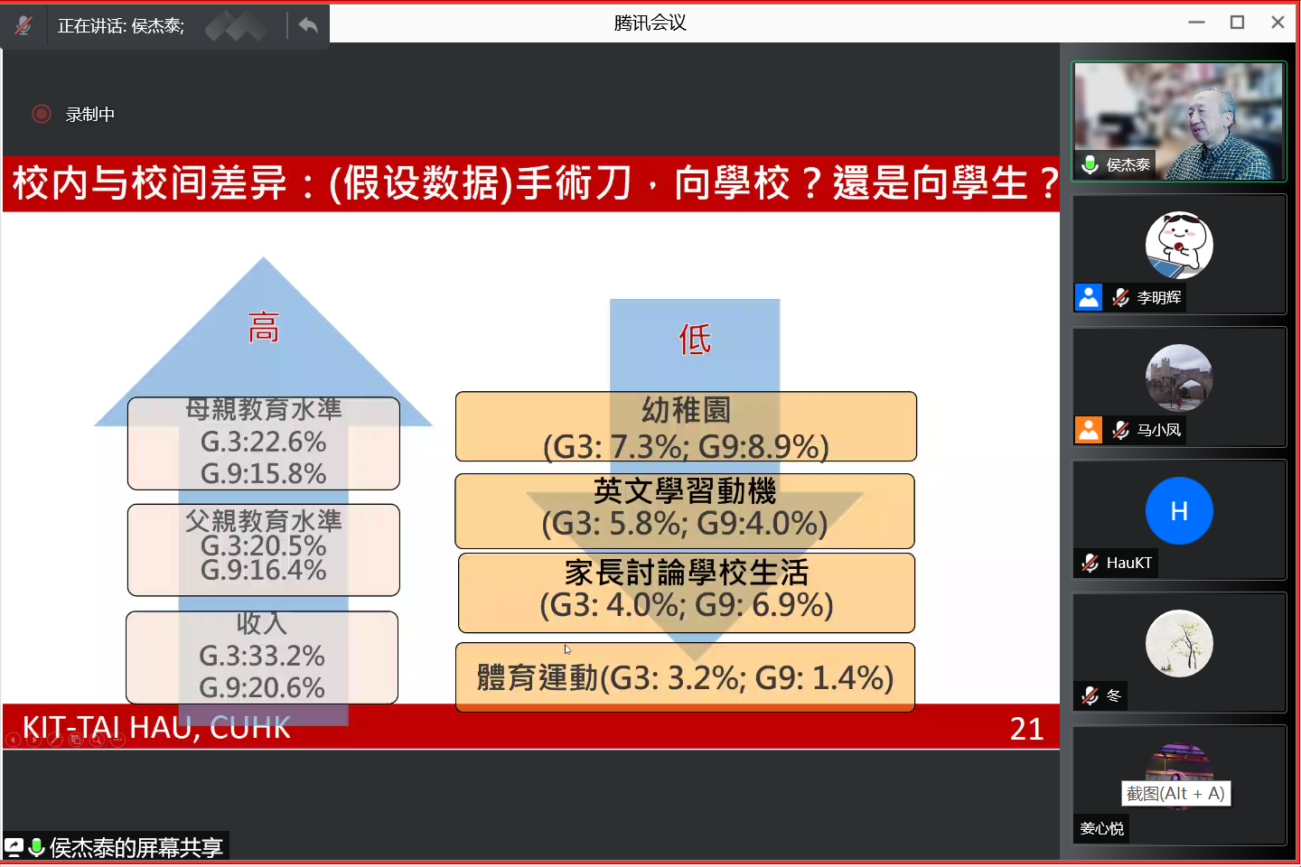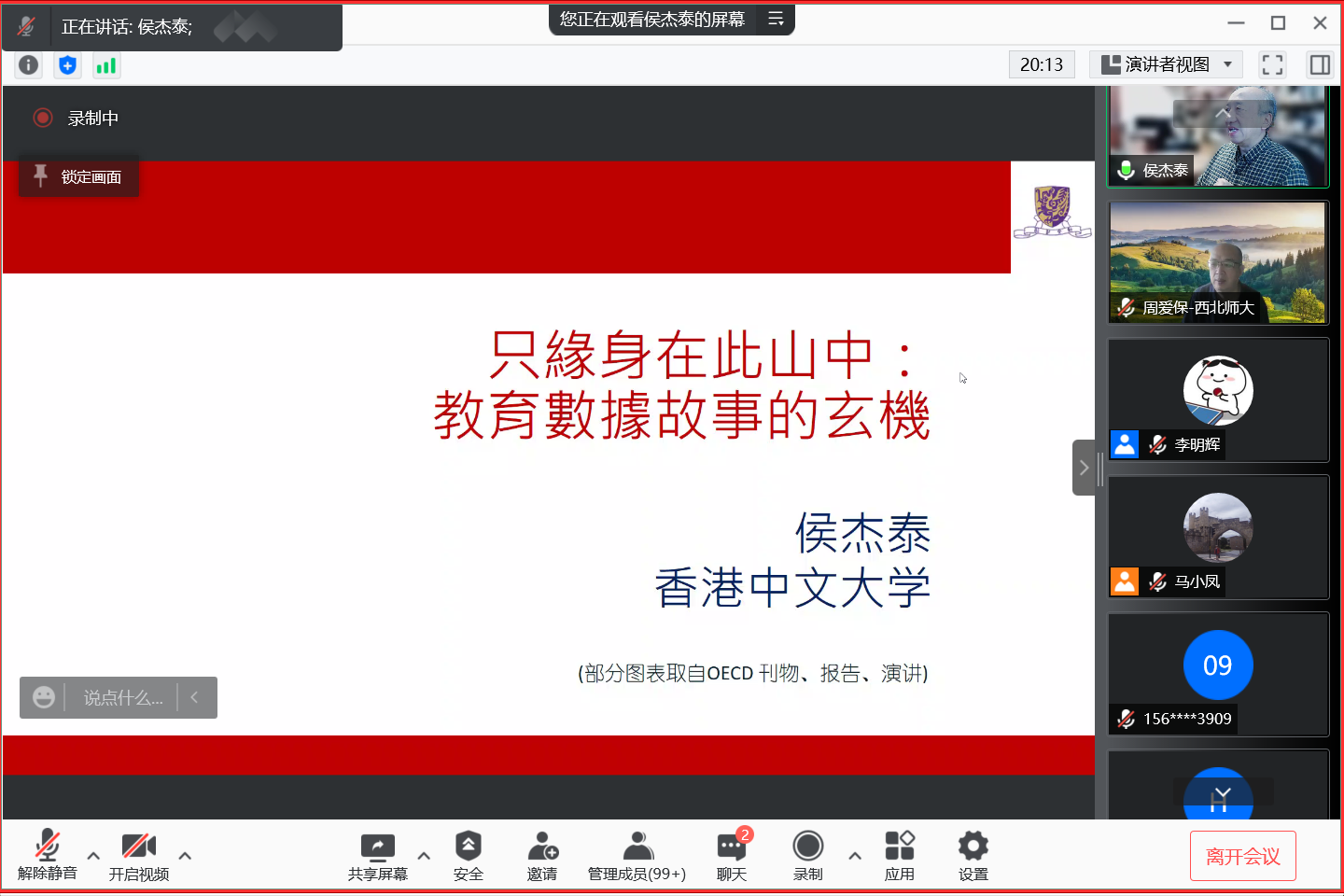 2021年12月18日,应350vip浦京集团官网邀请,香港中文大学侯杰泰教授为浦京师生作题为《教育数据: 说故事及寻找教学启示的方法》的学术报告。报告由350vip浦京集团官网周爱保教授主持,350vip浦京集团官网及其他院校400余名师生参加了本次报告。