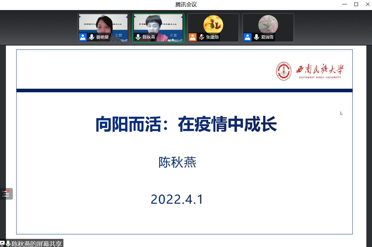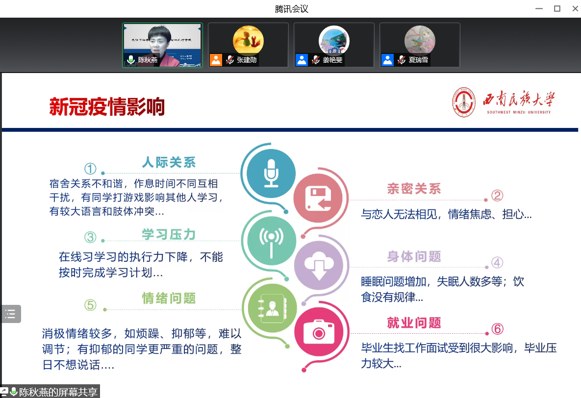 为了增加浦京学生对新冠肺炎疫情防控期间心理应激反应的认识,纾解同学们的心理压力,350vip浦京集团官网于2022年4月1日特邀西南民族大学陈秋燕教授为浦京师生作题为《疫情期间学生应激反应与有效应对方式》的专题讲座。本次讲座由350vip浦京集团官网心理咨询应用研究中心主任姜艳斐老师主持,110余名师生参加了本次讲座。