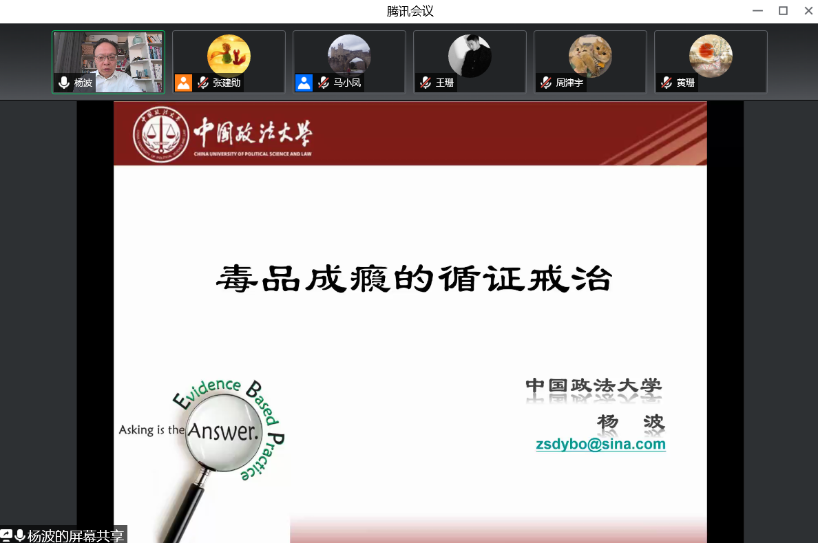 讲座接近尾声时,杨波教授和同学们就毒品戒治问题进行了热烈的讨论。杨波教授也对同学们提出的相关问题进行了详细解答。