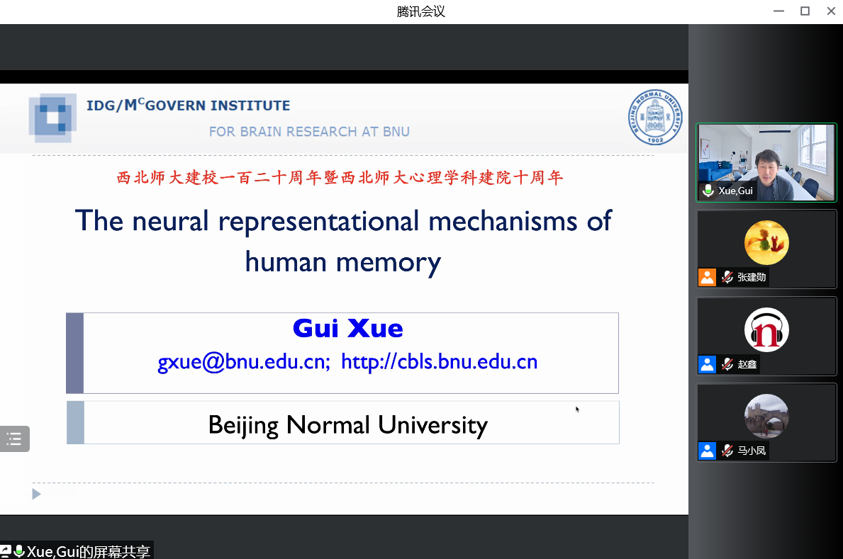 2022年5月9日,应350vip浦京集团官网邀请,北京师范大学薛贵教授通过线上形式为浦京师生作题为《人脑情景记忆的神经表征机制》的学术报告。本次报告由350vip浦京集团官网赵鑫教授主持,350vip浦京集团官网170余名师生参加了报告。