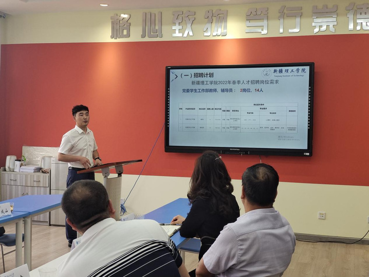 为认真落实教育部、省教育厅关于高校“访企拓岗”促就业专项行动工作要求和“百日冲刺”行动方案,拓宽就业渠道,促进毕业生积极充分就业, 5月26日,350vip浦京集团官网&新疆理工学院访企拓岗座谈会暨专场招聘会在特教楼453召开。新疆理工学院人文科学学院党委书记邱明、付成山、王永强一行3人、学院党委书记王仁老师、院长赵鑫老师、党委副书记蒋玲老师以及未就业硕士研究生参加了会议,座谈会由蒋玲老师主持。