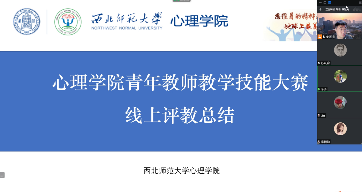 线上课堂教学展示从2022年5月16日至25日,为期两周时间。学院12位青年教师首先提交线上教学平台登录账号,并以线下课堂教学结合线上直播的方式展示了课堂教学,观摩课程包括《教育心理学》、《心理的生物学基础》、《心理学研究方法》、《心理统计学》等12门课程(具体活动安排如表1所示)。