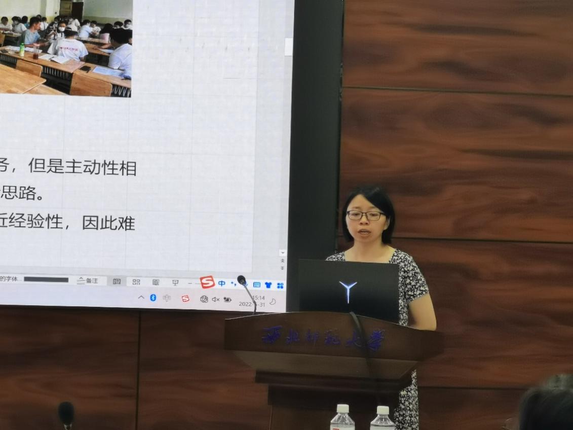 康廷虎副院长结合学院的教学工作,针对青年教师本科教学提出“五能”标准,即“能把课程内容讲清楚、能把课堂教学组织好、能把数字技术应用好、能把学生思维启发好、能把教学理念渗透好”,从专业知识与技能、从课堂教学组织能力、教学风格形成、学术研究育课程教学融合、教学理论和理念的学习与应用等方面,积极探索并提升自己的教学能力。同时,他也表达了对学院领导、师生的感谢,感谢学院对青年教师成长的重视和支持,同时,也表达了对学校教学督导、教务处、教学质量监控处的感谢,感谢学校各职能部门和教学督导长期以来对350vip浦京集团官网本科教学工作的支持。