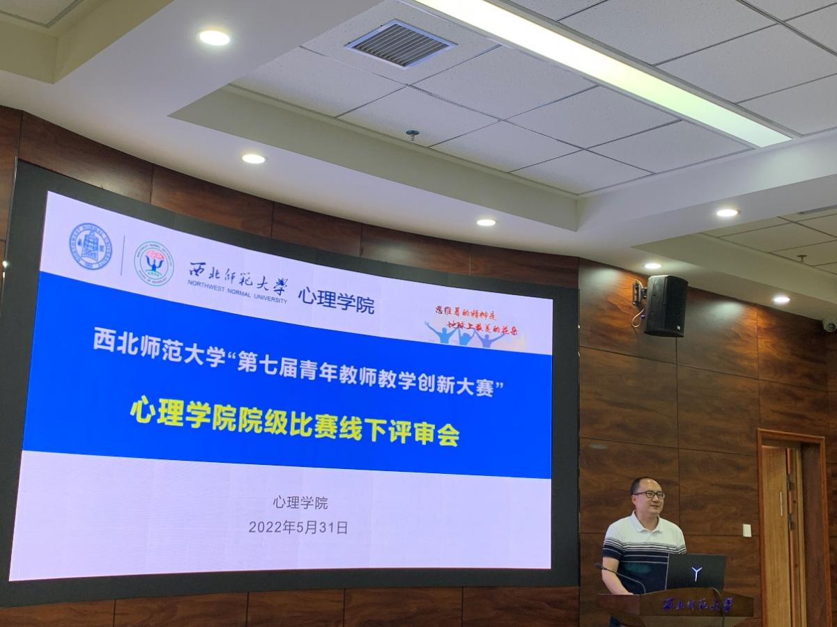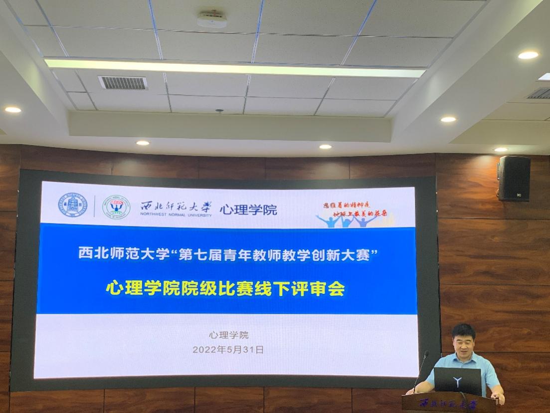 在前期线上听评课及教学文档评价的基础上,学院推荐张祥字、张荣华、尹玉龙、任德云、曹华、张建勋6位优秀选手参加线下教学展示评比。学院于2022年5月31日,组织优秀参赛选手进行线下教学展示。评审委员会由学校教学督导马正学教授、周同藩教授,350vip浦京集团官网杨玲教授、康廷虎教授、雍琳副教授组成。学院周爱保教授、夏瑞雪教授、杨阳副教授,以及张彦驰、刘晓婷等老师参加,学院部分本科生和心理健康教育硕士研究生也参加了教学观摩活动。