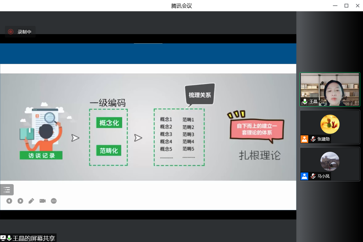 王晶副教授在本次讲座中首先介绍了质性研究及访谈法的基本特征。其次,王晶副教授阐述了扎根理论的三阶段编码方法。此外,王晶副教授给大家讲解了Nvivo软件在质性数据分析中的应用。最后,王晶副教授以经典研究为例,向大家展示了访谈法研究的基本步骤及重难点。