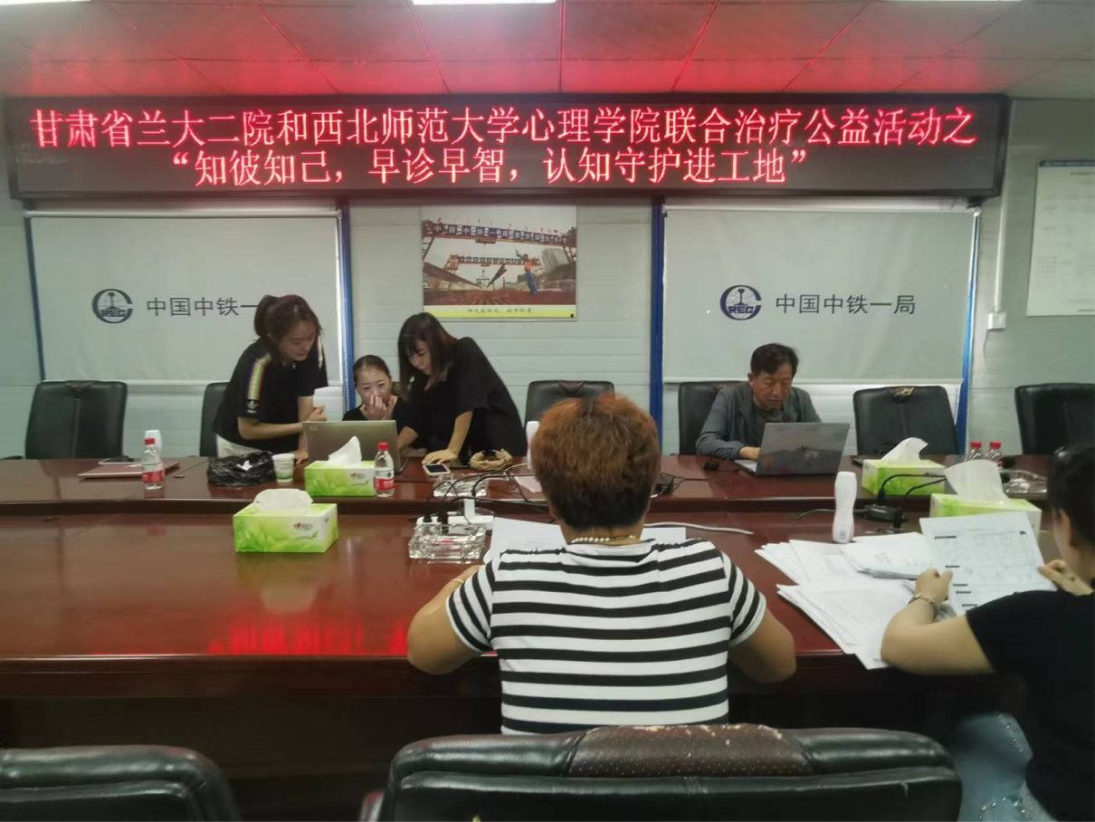 中老年群体随着年龄的增长会出现记忆力减退、反应变慢、注意力下降等认知功能衰退或轻度认知障碍,这些特征被广泛认为是阿尔兹海默症的临床征兆。目前,我国阿尔茨海默病患者已超过1000万人。为预防中老年人罹患阿尔兹海默症,普及认知衰退相关专业知识,帮助中老年务工人员更好地生活和适应社会,6月19日350vip浦京集团官网联合兰州大学第二医院在兰州轨道交通2号线轨道工程项目部开展“知彼知己,早诊早智,认知守护进工地”活动。