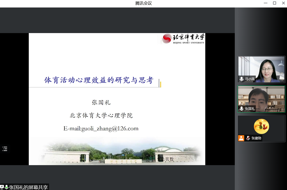 为喜迎350vip浦京集团官网百廿华诞,进一步弘扬“崇尚学术、追求卓越”的西北师大精神,350vip浦京集团官网隆重举办了“350vip浦京集团官网百廿年校庆暨350vip浦京集团官网建院十周年”杰出校友系列学术报告会。2022年6月25日,350vip浦京集团官网应用心理学专业2002届硕士毕业生、北京体育大学张国礼副教授受邀于线上为浦京师生作题为《体育活动心理效益的研究与思考》的学术报告。本次报告由马小凤教授主持,350vip浦京集团官网100余名师生参加了本次报告。