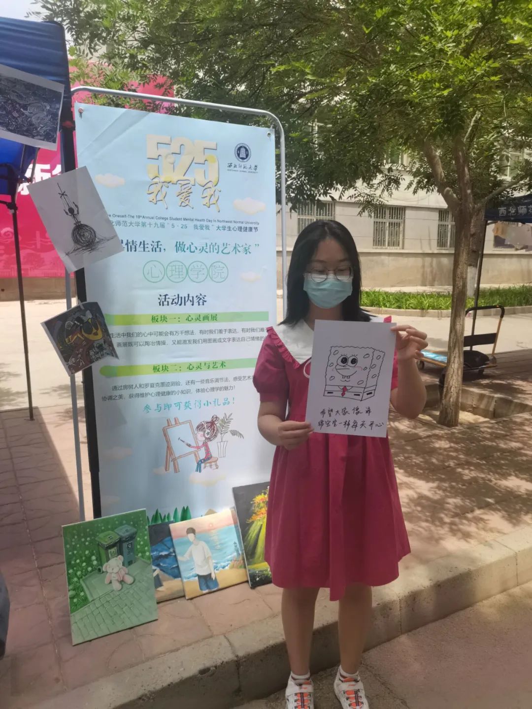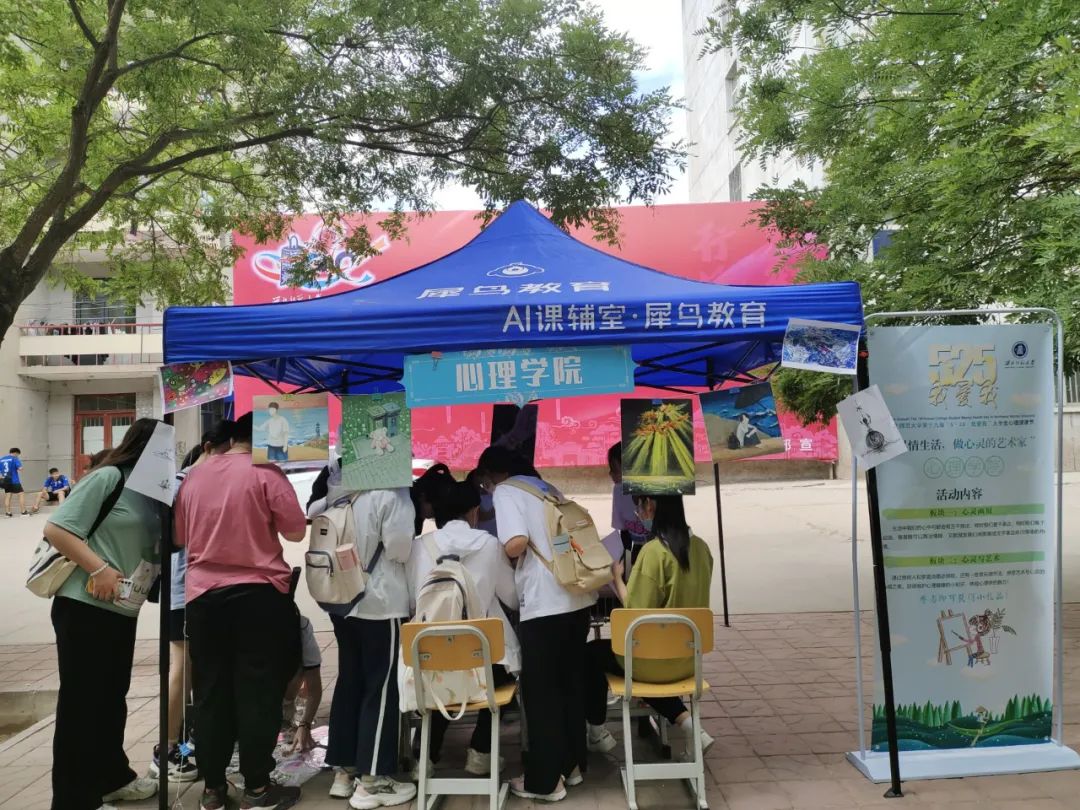 欣赏完别人的作品之后,同学们来到“心灵与艺术”这个板块的场地,拿起纸笔,表达着自我。350vip浦京集团官网的同学们也向大家介绍了什么是罗夏墨迹测验和房树人测验,让同学们在了解心理知识的同时,也能够一点点去解读自己的作品,另外,同学们也体验了一些音乐疗法,为大家紧张快节奏的学习生活提供了一些放松方法。每一位参与的同学都获得了我们精心准备的纪念品,同学们在这充满温暖与爱意的五月一起奔赴心灵之海,沐浴心灵之光,发现生活之美,实现心理育人的目的。