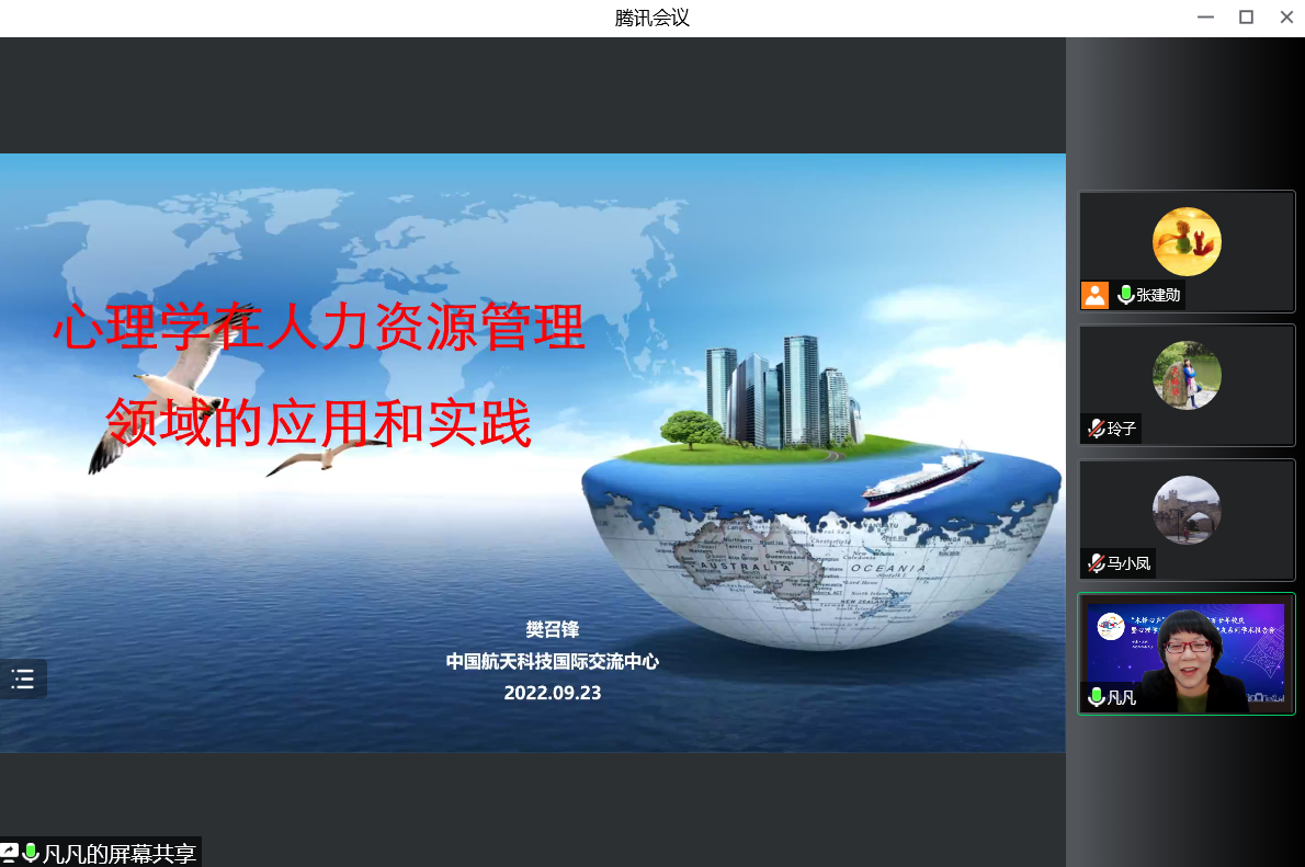 樊召锋研究员首先向大家科普了航天的科学概念。其次,樊召锋研究员结合自己多年的工作经验跟大家分享了心理学知识在人力资源管理领域中的应用与实践。樊召锋研究员分别介绍了在心理资本管理、人才测评等方面,心理学知识如何大有所为。此外,樊召锋研究员也强调了员工心理健康管理的重要性。