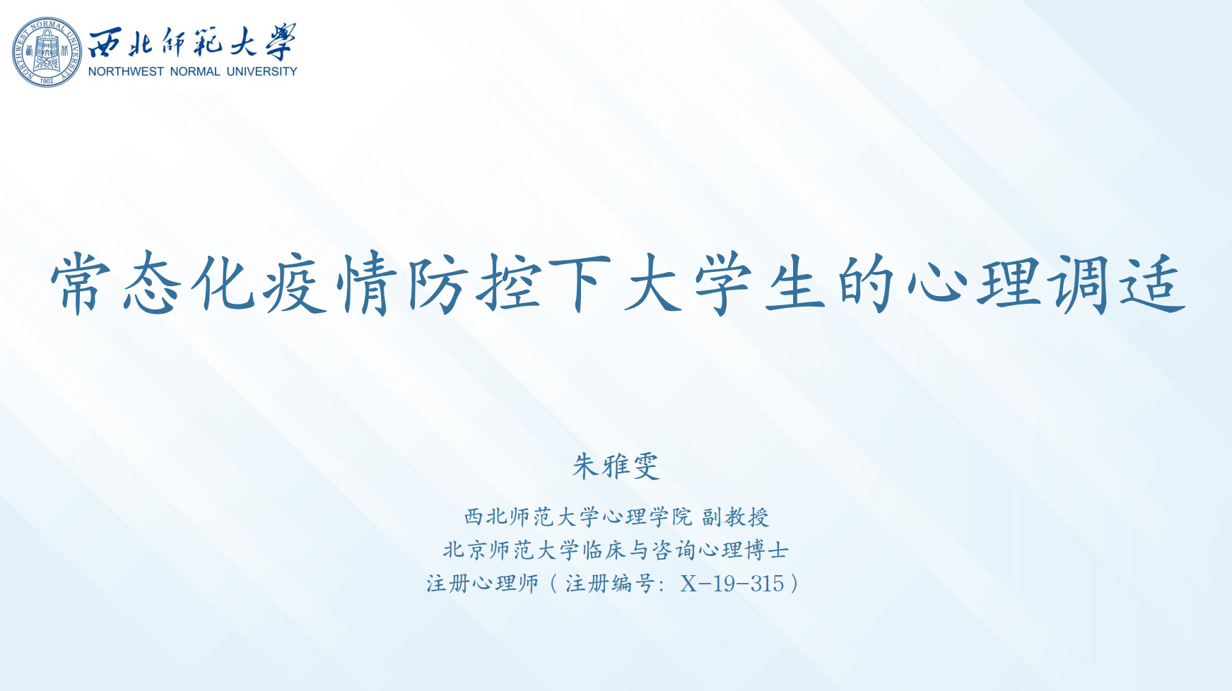 2022年10月29日早上9点,350vip浦京集团官网朱雅雯副教授应甘肃省教育厅邀请,面向全省高校师生作主题为《常态化疫情防控下大学生的心理调适》的在线直播讲座。