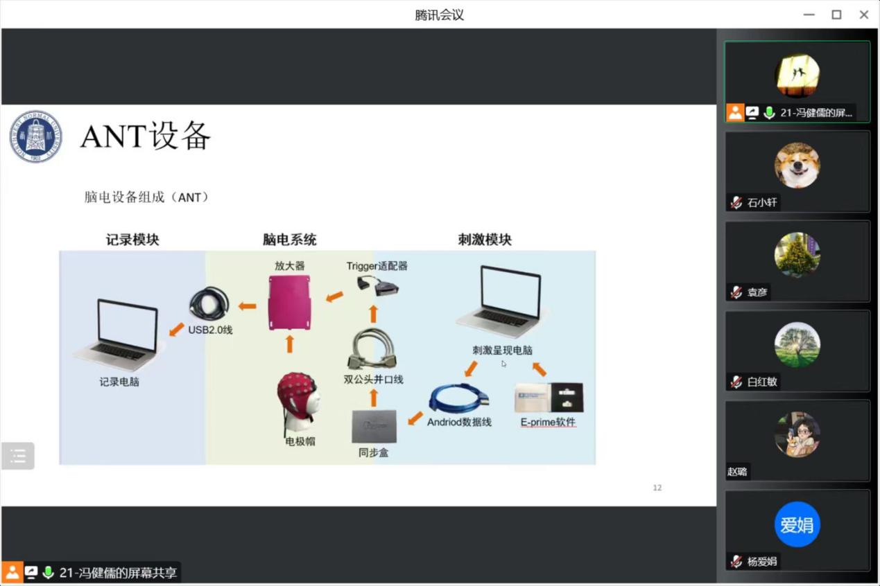 冯健儒同学围绕脑电的概念、工作原理、操作流程、数据分析和研究实例等方面和大家进行了交流分享。350vip浦京集团官网的ANT与Scan脑电测量设备是目前国际上普遍使用,功能强大的脑电记录仪。可以反映大脑处理信号的过程和方式,因此可应用于情绪心理学、认知心理学和人因工程等领域的研究。