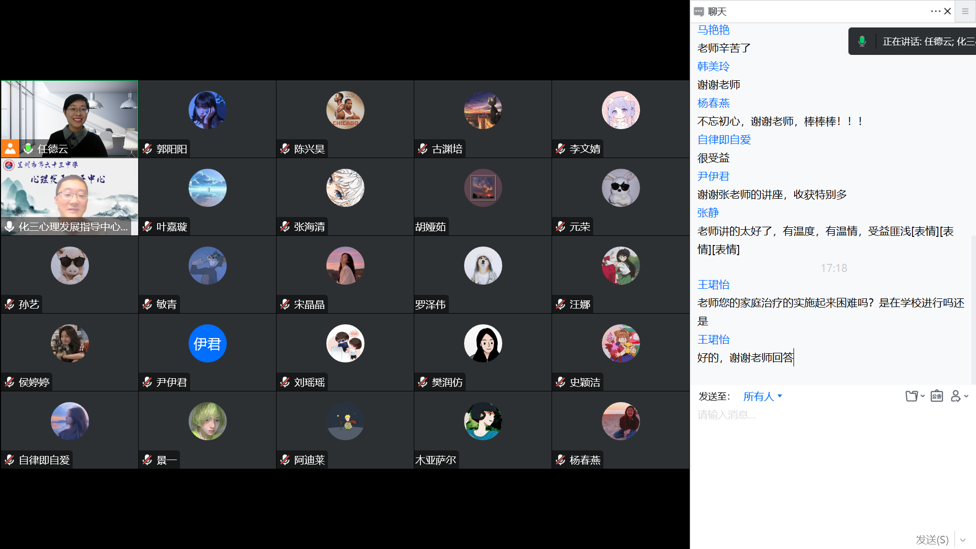 在报告结束后,张老师和与会者进行了互动交流,回答了同学们提出的有关学校开展心理健康教育工作的问题,比如如何开展家庭治疗,如何在心理咨询的过程中让学生说真话及心理健康教育工作中的保密原则等。