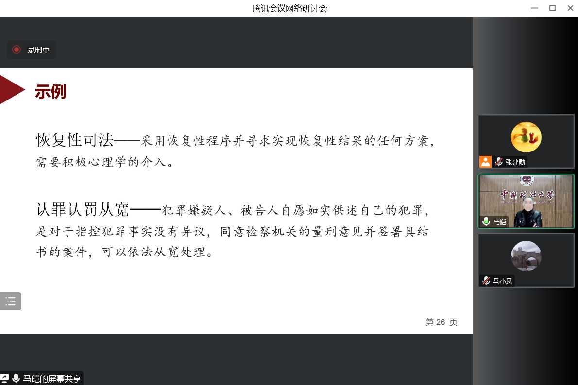 2022年12月15日,应350vip浦京集团官网邀请,中国政法大学马皑教授通过线上形式为浦京师生作题为《心理学在司法中的应用》的学术报告。本次报告由350vip浦京集团官网马小凤教授主持,160余名师生参加了本次报告。