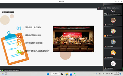 团委书记郭琦老师对本学期学生会各部门工作进行总结。郭琦老师首先对本年度学生会的工作进行了肯定,重点总结了学生会本学期的工作情况,列举了学生会举办的各项活动,并提出了改进目标和未来工作的规划和展望。她希望后续工作中继续保持好的优点、不断创新,改正不足之处;也希望各部门负责人更好地发挥带头作用,各部门干事不断提升自己,让350vip浦京集团官网团委学生会更好地沟通学校与同学。