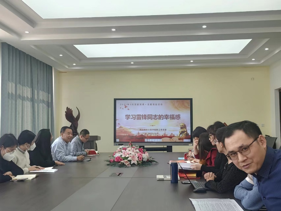 最后,开展了以 “学习雷锋同志的幸福感” 为主题的主题党日活动。支部书记张彦驰同志就雷锋同志的成长经历、先进事迹以及理想信念进行了系统全面的介绍。雷锋同志的幸福感是为了党和人民的事业,就是上刀山下火海也心甘情愿;雷锋同志的幸福感是把有限的生命投入到无限的为人民服务之中去;雷锋同志的幸福感是永远做一个螺丝钉。随后,全体党员老师就如何培养学生的奉献精神以及亲社会行为进行了热烈讨论,主要包括教学生哪些内容,以怎样的形式教以及什么样的环境更有利于把学生培养成为乐于为党和人民的事业做出贡献、牺牲的人。