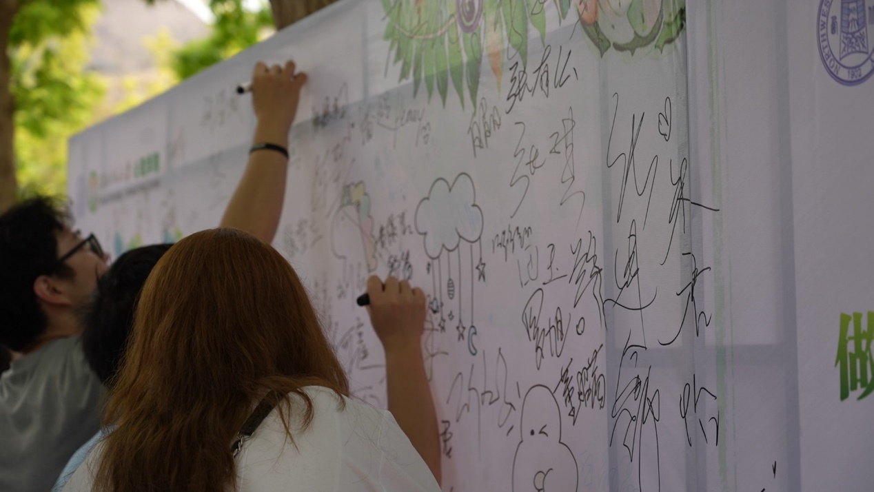 在习近平新时代中国特色社会主义思想学习站点,同学们通过答题领悟习近平总书记的重要讲话精神以及习近平总书记在党的二十大报告中对青年的寄语,在答题中领会习近平新时代中国特色社会主义思想,感悟领袖对青年的关爱;民族团结进步教育站点将答题与打卡拍照相结合,同学们通过学习了解民族团结之根、民族团结之本,体会不同的民族文化,认识到“一部中国史,就是一部各民族交融汇聚成多元一体中华民族的历史,就是各民族共同缔造、发展、巩固统一的伟大祖国的历史”;诚信教育站点的签名墙吸引了同学们驻足打卡,“我为诚信做代言”以及精心设计的诚信知识问答,让同学们真正感悟了习近平总书记“诚信精神是社会主义关键价值体系的主要内容,是社会主义优秀文化的主要基石,对人格的塑造、品德的培养有决定作用,和民族自强,社会进步也息息相关”的精神内核,同学们纷纷拿起笔在签名墙上书写下自己的承诺;学院将自身专业特色融入心理健康教育站点的活动中,在答题打卡的同时开展“爱自己的100条理由”征集活动,不仅学习宣传心理健康知识,促进大学生全面发展,更时刻提醒我们关爱自己、悦纳自己,成为自己身心健康的第一责任人。