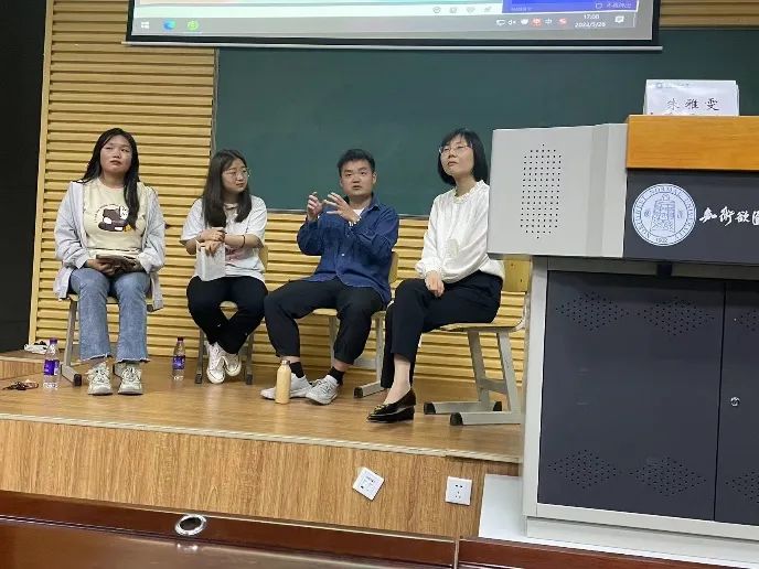 紧接着朱雅雯老师又提出了使命感这一话题,学长学姐向我们分享了他们的看法。张可琦学姐经过一段时间的思想斗争,最终决定考研,不管成不成功,总要试一下,给自己一个机会,她希望以后用专业知识帮助更多的人。但是史颖洁学姐在经历了帮助别人的无力感之后她觉得现在得先做好自己,再去帮助别人。她考研的时候正值疫情期间,这对于人的心理和生理方面都是极大的考验,但是她从来没有放弃,她鼓励我们参加考研,感受一下考研带来的欢乐和泪水。刘学斌学长的考研经历比较有趣,他觉得自己考研上岸是有一部分运气在里面的。