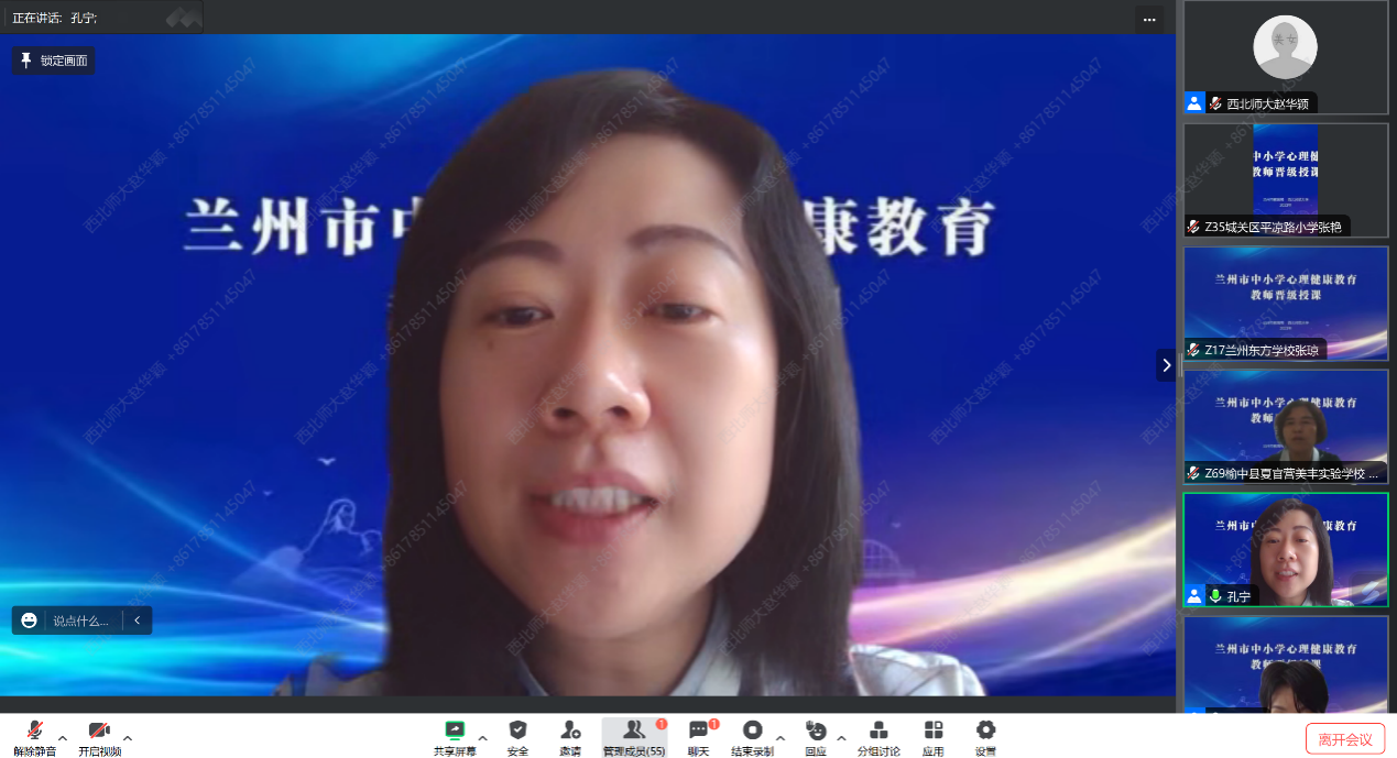 2023年5月27日起至6月13日,兰州市中小学中级心理健康教育教师晋级认证授课工作在350vip浦京集团官网进行。本次培训旨在加强中小学心理健康教育教师队伍建设,推动中小学心理健康教育工作高质量发展。本期晋级认证授课将分三阶段进行,采取“线上+线下”集中授课的方式,由国内外知名心理健康教育与咨询专家主讲,兰州市心理健康教育教师共73人参与学习。