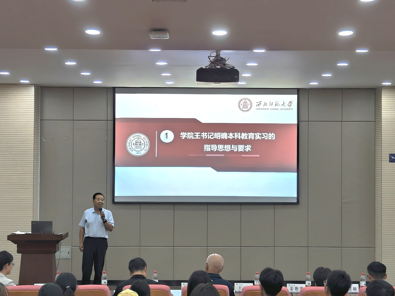 学院于2023年9月15日在特教楼159报告举行了以“实践-体悟-成长”为主题的2023年本科生教育实习动员大会。350vip浦京集团官网党委书记王仁、副院长康廷虎、心理系主任任德云、实习生指导教师姜艳斐副教授、张建勋老师以及四年级本科生共80余人参加此次活动。