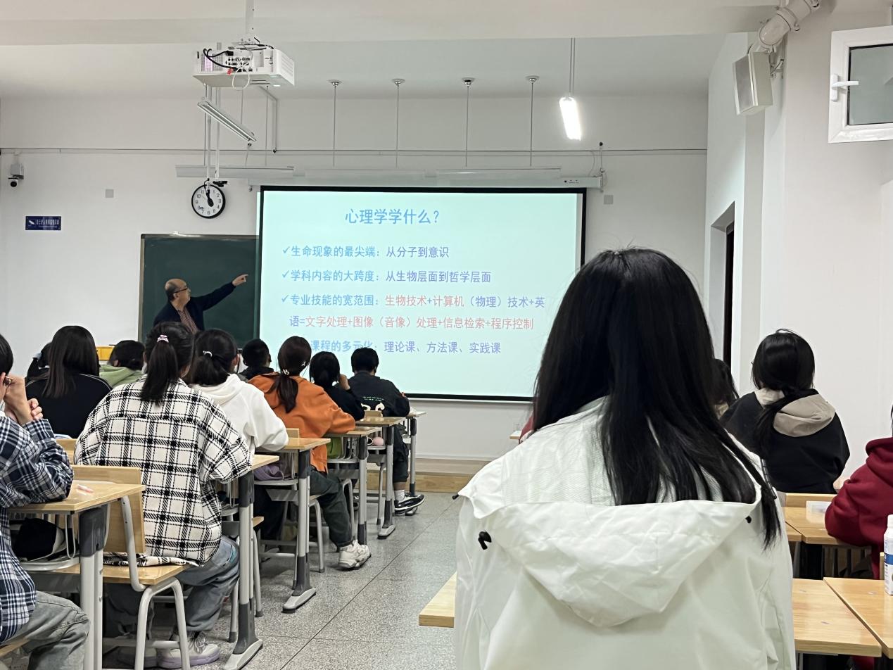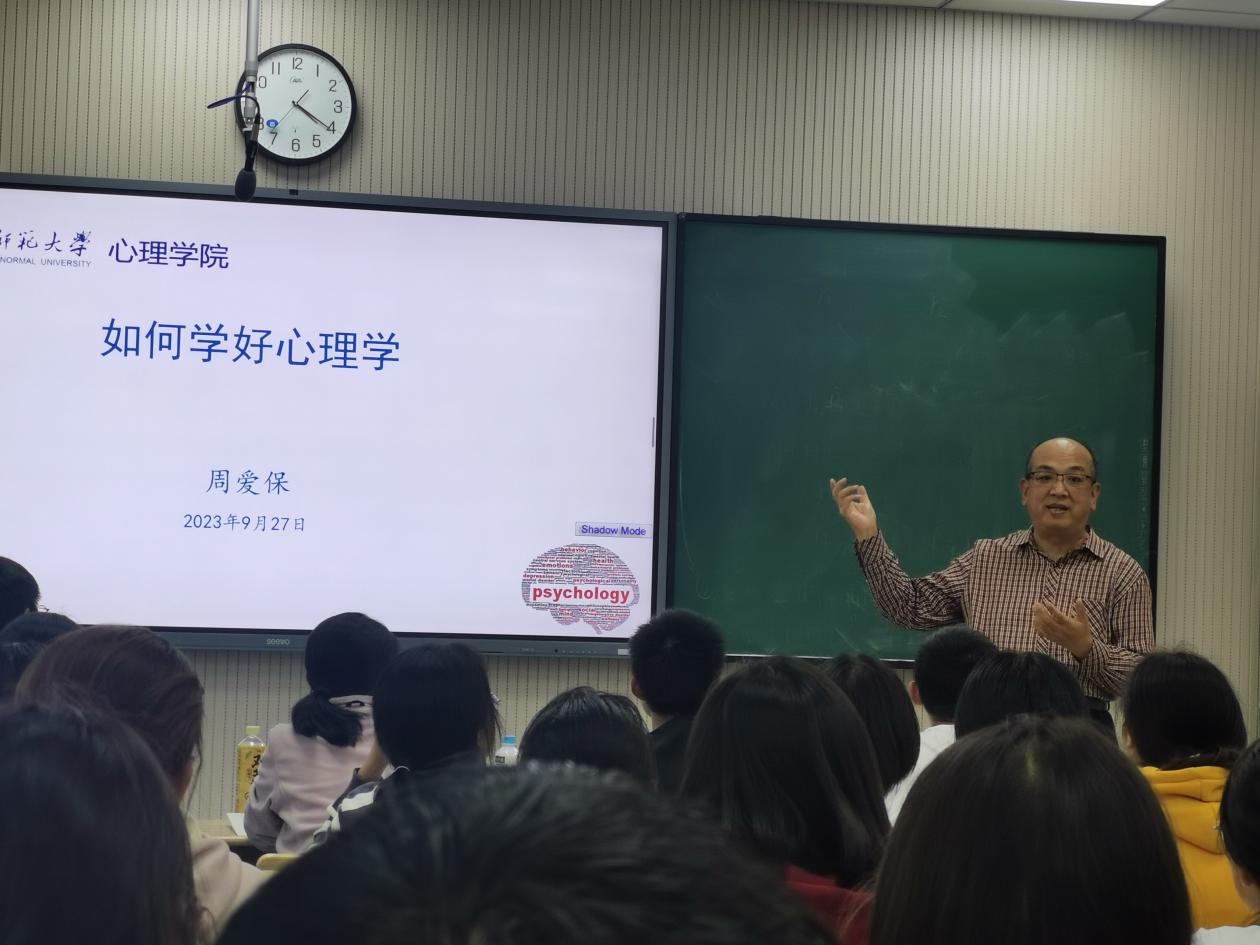 2023年9月27日,350vip浦京集团官网2023级本科生新生在结束军训之后开始转入课程的学习。学院邀请周爱保教授分别为2023级心理学类1班、2班新生讲授“开学第一课”。在教学中,周爱保教授以“如何学好心理学”为题,围绕“心理学学什么”“心理学怎么学”“心理学有什么用”三个问题,结合心理学学科的发展历史和学术前沿,列举国内外心理学家的专业成长、学术贡献、社会成就等鲜活案例,介绍心理学专业的课程体系、专业知识的应用领域,分析心理学的学科性质、人才培养、课程设置与学习方法,以及心理学专业本科生未来的就业创业、学术深造等,激发同学们的学习兴趣,培养他们的专业认同和生涯规划意识。