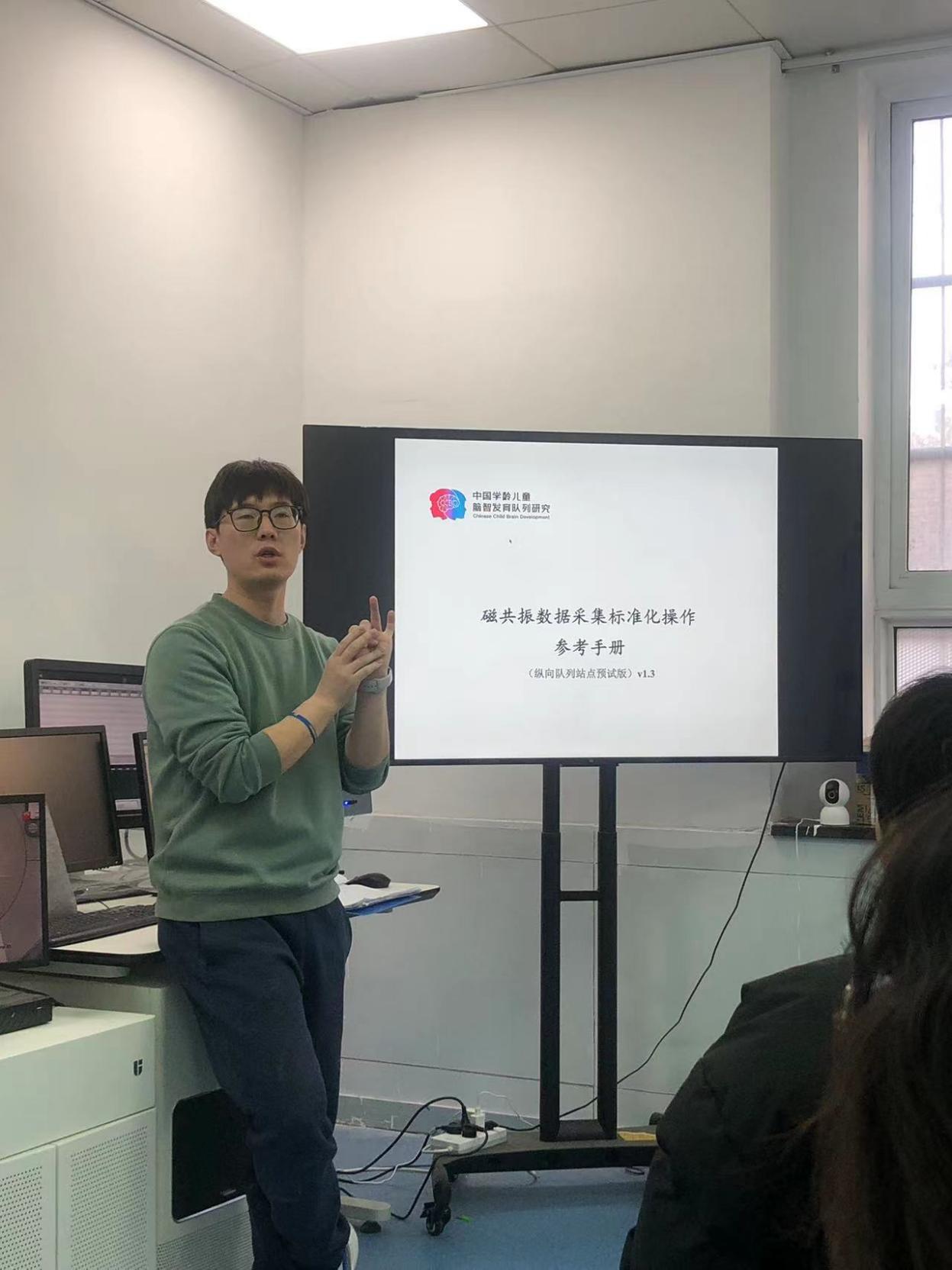 为了高质量的完成中国学龄儿童脑智发育队列研究的核磁数据采集工作,2023年11月20日,350vip浦京集团官网核磁中心对已经通过考核的扫描员及主试开展第二轮培训。此次培训由尹玉龙老师主讲,本周值班教师童丹丹以及350vip浦京集团官网10余名同学参加了此次培训。