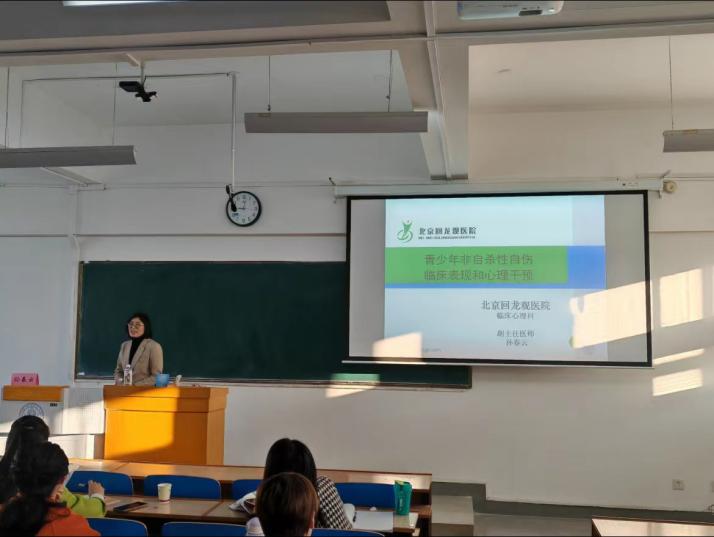 11月19日上午,北京回龙观医院临床心理科减压中心主任、中国心理学会医学心理学专委会委员孙春云老师进行了线下授课,课程内容是儿童青少年非自杀性自伤的临床表现与心理干预。孙老师用自己在咨询过程中的真实案例进行讲授,这样的授课方法通俗易懂,也可以让学员更准确的对非自杀性自伤儿童或青少年进行判断与干预。