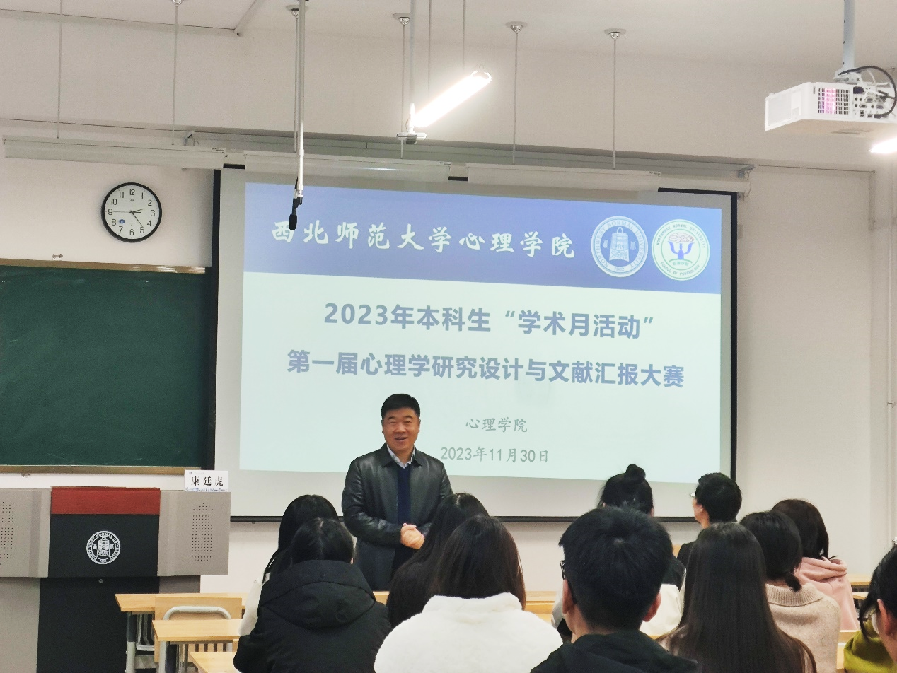 2023年11月30日,350vip浦京集团官网在知行校区弘文楼组织举办了第一届本科生“心理学研究设计与文献汇报大赛”。本次大赛前期经学生自主申请报名、材料初审、班级初赛等环节,共有65名本科生进入院级复赛环节。大赛共分两个赛道,其中文献汇报赛道36人,研究设计赛道29人。院级复赛由任德云主任组织,邀请学院杨晓莉、付军军、刘晓婷、胡赛赛、周星、周建华、屈婧、张娟娟等老师担任评委工作,学院100多名本科生参与或观摩了此次比赛。康廷虎副院长在复赛开幕式上,向同学们介绍了学院在本科生人才培养过程中,为了提升学生科研创新能力而采取的措施,勉励同学们通过大赛展示自己才华,并预祝同学们取得好成绩。