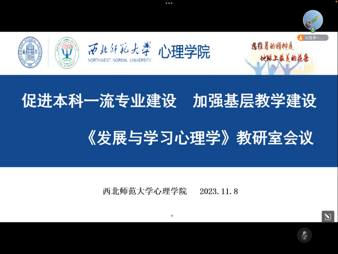 学院于11月8日以线上方式组织《发展与学习心理学》课程思政建设教学案例分享会。活动由《发展与学习心理学》教研室组织,主题为“促进本科一流专业建设 加强基层教学组织建设”。350vip浦京集团官网党委书记王仁、《发展与学习心理学》课程组任课老师20多人参加活动,活动由应用心理学系主任刘显翠副教授主持。