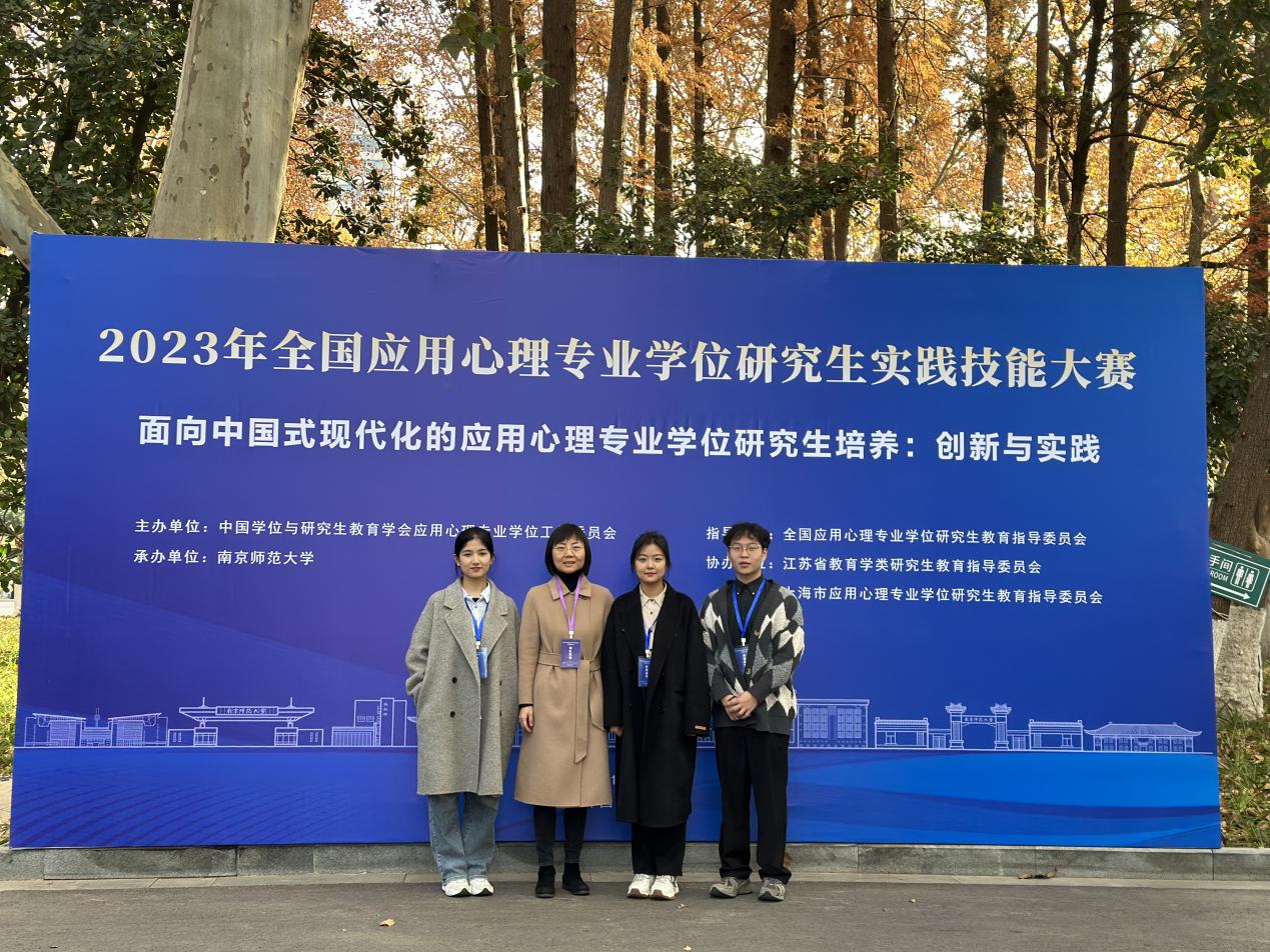 2023年12月8-9日,第三届“全国应用心理专业学位研究生实践技能大赛”在南京师范大学随园校区举行。浦京姜艳斐副教授指导的姚有娟同学获得心理咨询面谈技能比赛一等奖;朱雅雯副教授指导的李宁同学获得心理咨询面谈技能比赛二等奖;雍琳副教授指导的杨尚儒同学、张倩倩同学和钟培华同学获得应用心理教学案例比赛二等奖;吴博副教授指导的霍启轩同学、徐晟晟同学和肖玉芊同学荣获心理科普短视频三等奖。本次比赛由朱雅雯副教授带队参加,吴博副教授受邀担任比赛评委。