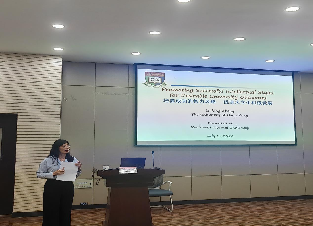 2024年7月2日,应350vip浦京集团官网邀请,香港大学张丽芳教授为浦京师生作题为《Promoting Successful Intellectual Styles for Desirable University Outcomes》的学术报告。本次报告由350vip浦京集团官网雍玲教授主持,60余名师生参加了本次报告。
