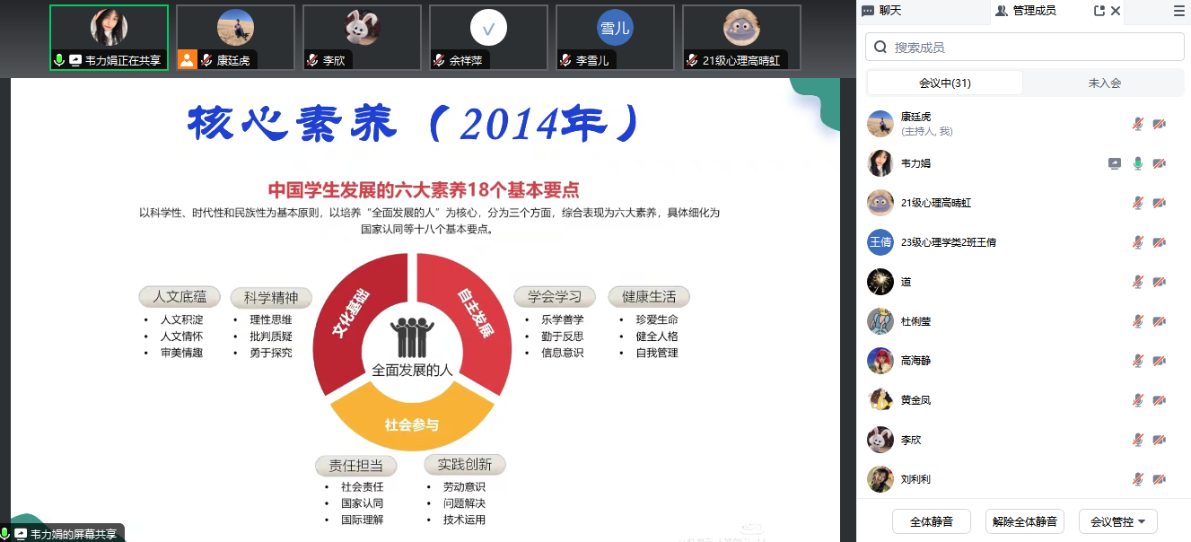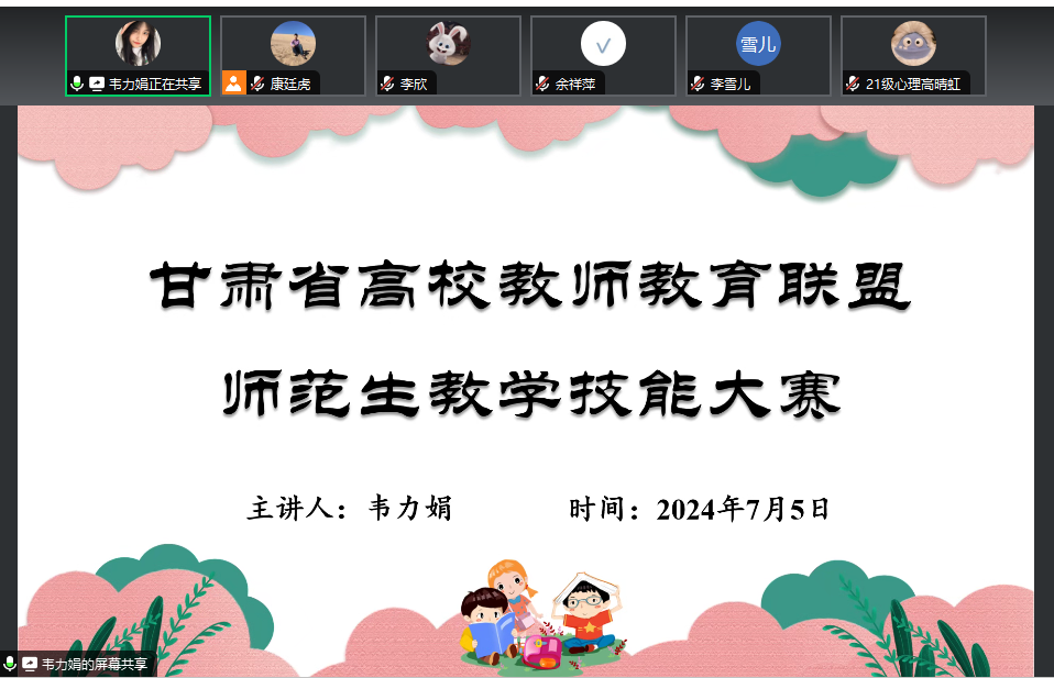 为了落实甘肃省教育厅《关于公布2024年省级大学生学科专业竞赛项目的通知》和学校《关于举办“第五届甘肃省高校师范生教学技能大赛”校级比赛的通知》,引导学院学生积极参加师范生教学技能大赛,营造“以赛促学、以赛促教”的氛围,学院于2024年7月5日,邀请第四届甘肃省高校师范生教学技能大赛的一等奖获得者韦力娟同学,介绍师范生教学技能大赛的基本要求,分享参加校赛和省级比赛的经验。学院各年级同学、应用心理学系和心理学系的系主任、指导教师30多人参加了活动。