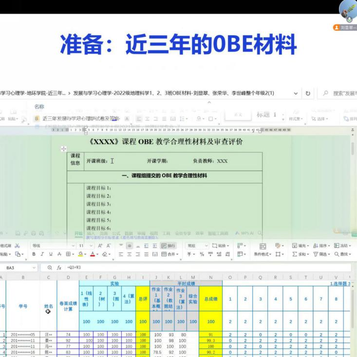 在培训讲座中,刘显翠主任结合师范专业认证过程中《发展与学习心理学》课程考务材料的整理工作,系统介绍了教学大纲编订、课程组建设、试卷命题与审核、试卷分析与OBE材料整理等内容。