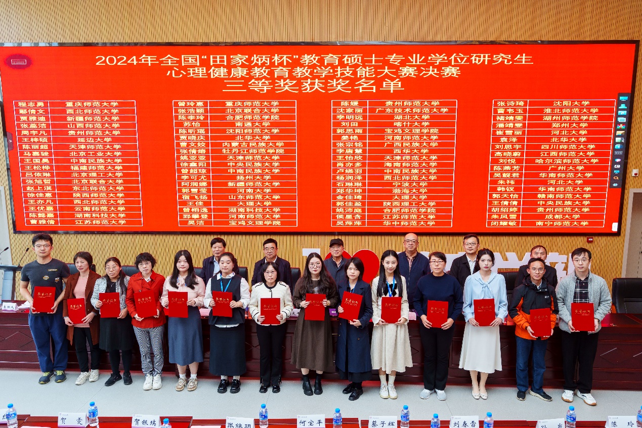 10月26日上午,2024年全国“田家炳杯”全日制教育硕士专业学位研究生“心理健康教育”专业教学技能大赛于云南师范大学举行。浦京研究生蒋娴同学获得本次比赛二等奖,杨润泽、王亦凡、鄢倩文三位同学获得本次比赛三等奖,王雅琪同学获本次比赛的“优秀教学设计奖”, 童丹丹副教授获优秀指导教师奖。
