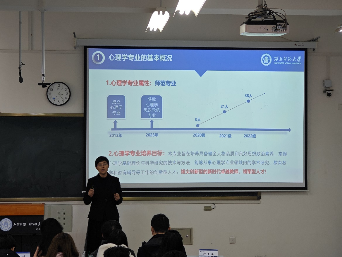 在会上,心理系任德云主任为本科生详细介绍了心理学专业的人才培养方案和人才培养目标。心理学专业旨在培养具备健全人格品质和良好思想政治素养,掌握心理学基础理论与科学研究的技术与方法,能够从事心理学专业领域内的学术研究、教育教学和咨询辅导的创新型人才。此外,任主任还结合专业建设和人才培养工作,分析了当前心理学专业本科生的就业考研形势,鼓励学生了解心理学专业的社会需求,并结合生涯规划做好备考研究生的准备,以提升自己的专业素养和竞争力。