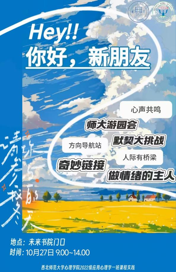 学生们结合前期调查,设计了心理健康教育的实践活动。活动在未来书院区域内分7个模块开展,主要包括针对人际关系和环境适应而开展的“师大游园会”“人际桥梁”等互动游戏,让一年级本科生进一步熟悉师大校园并且建立积极的人际关系,增强社会支持感,感受心灵的成长与幸福感的提升。此外,活动还包含与情绪管理、自我认识相关的主题活动,引导参与者在互动体验中学习自我探索和情绪管理的有效方法,在轻松愉快的氛围中获取心理健康知识,享受心理服务的乐趣。