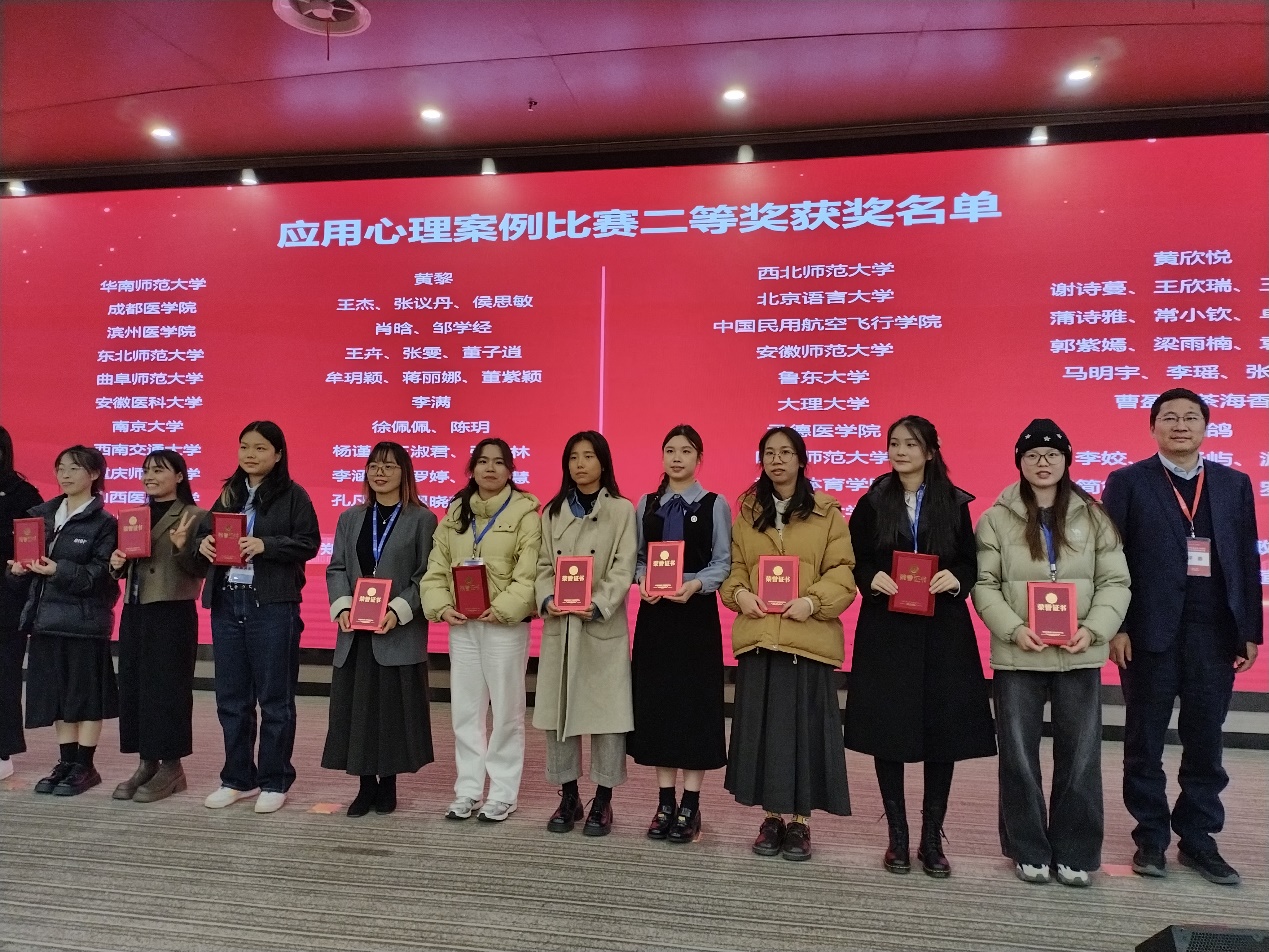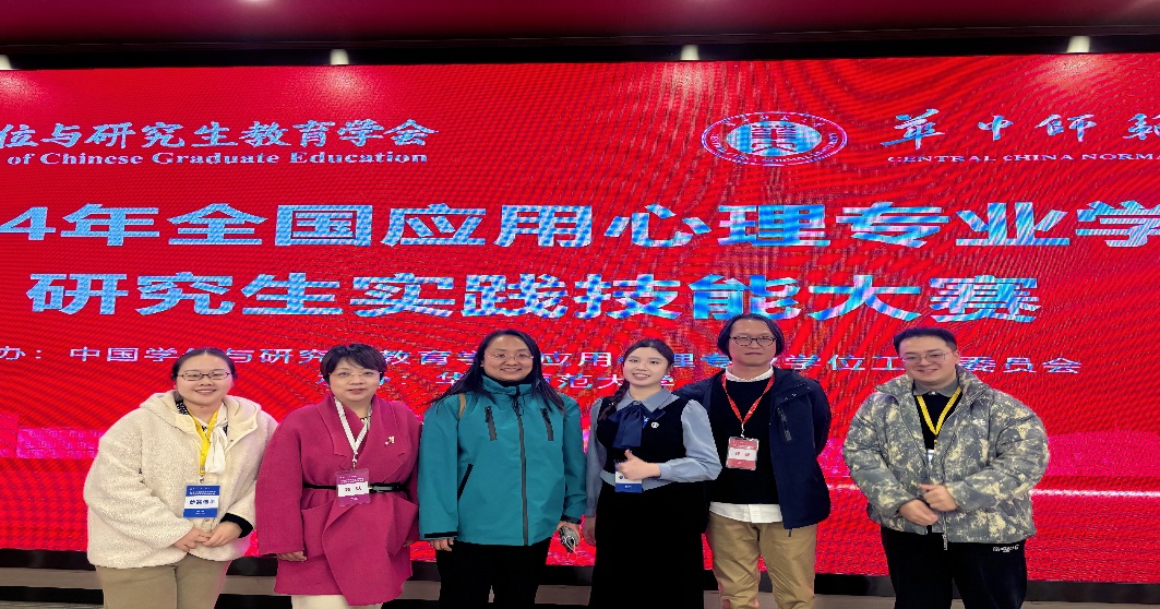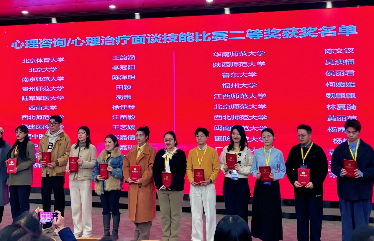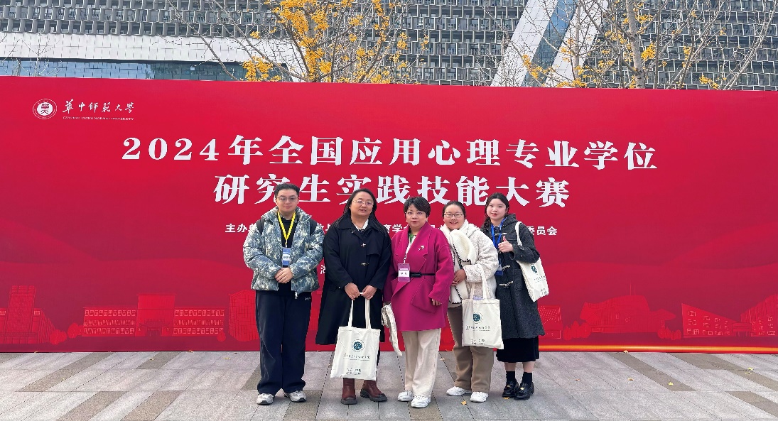 2024年12月7-8日,由全国应用心理专业学位研究生教育指导委员会指导、中国学位与研究生教育学会主办的2024年全国应用心理专业学位研究生实践技能大赛在华中师范大学举行。浦京姜艳斐副教授指导的黄丽萍同学获得心理咨询面谈技能比赛二等奖;吴博副教授指导的汪苗毅同学获得心理咨询面谈技能比赛二等奖;周爱保教授指导的黄欣悦同学获得应用心理教学案例比赛二等奖;本次比赛由姜艳斐副教授和雍琳副教授带队参加,张继元老师受邀担任比赛评委。