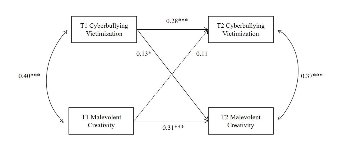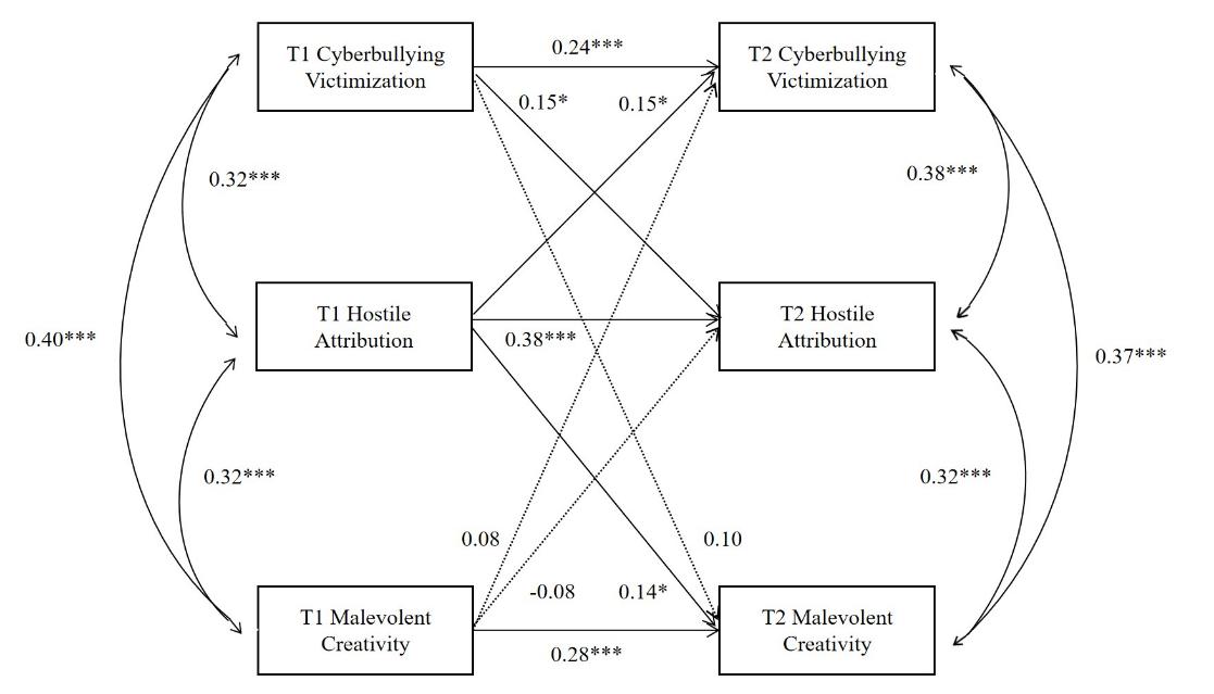 图2 网络被欺凌和恶意创造力的交叉滞后模型